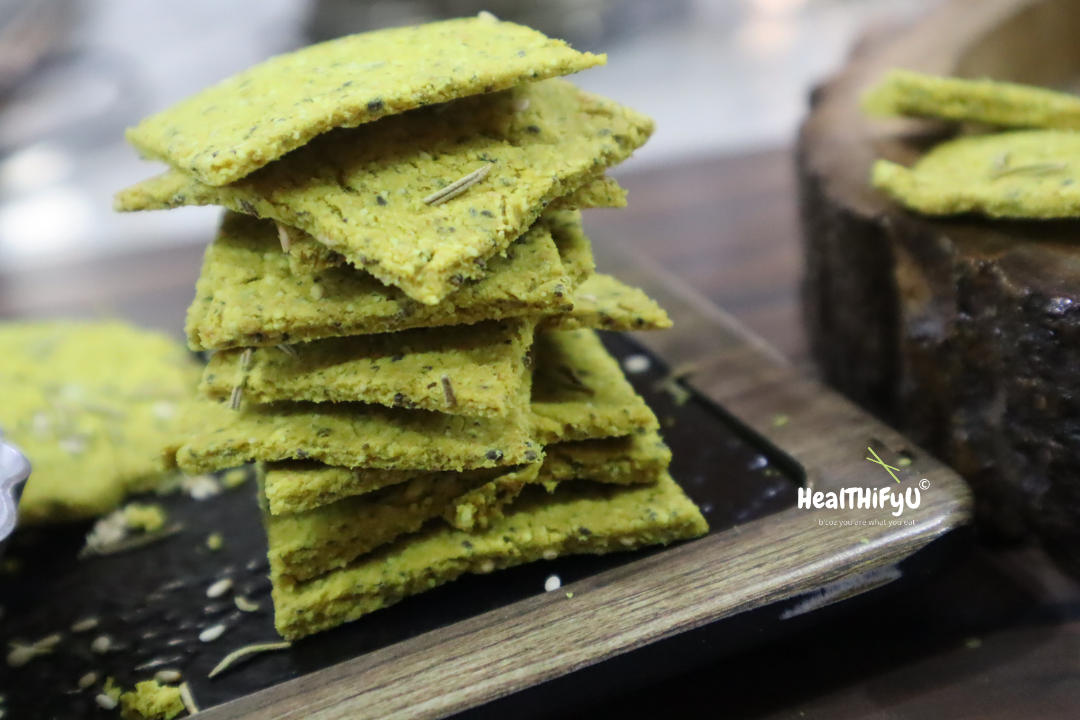 A cracker is a flat, dry baked food typically made with flour. Flavorings or seasonings, such as salt, herbs, seeds, or cheese, may be added to the dough or sprinkled on top before baking. These brown rice crackers are the best snacking option as they are low fat & fiber-rich. So dump your zero nutrition Maida for your Savouries & enjoy these Gluten-free Baked/Airfried Healthy Crispy crackers.