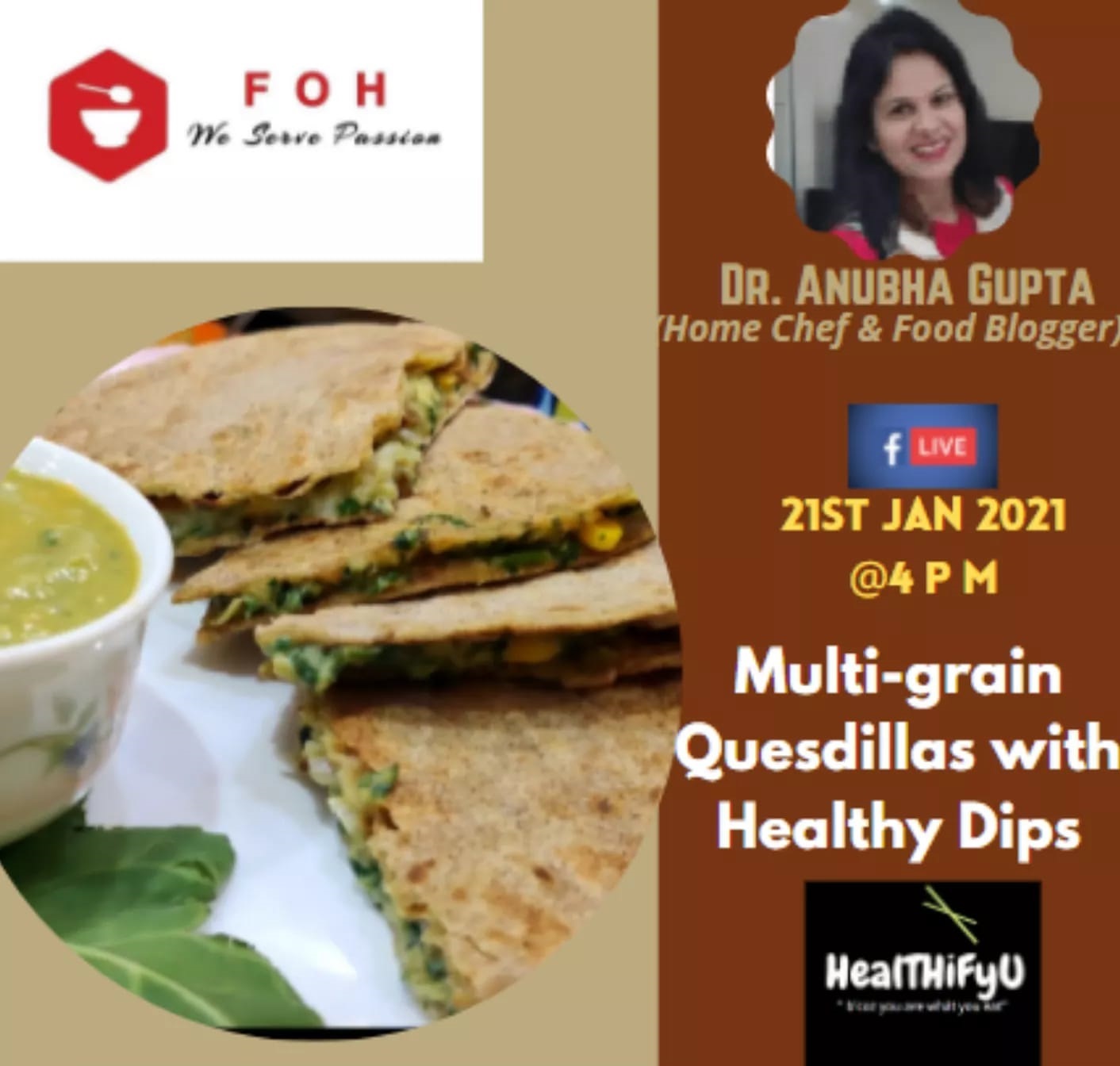Zero Oil Cooking – Multigrain Quesadillas with healthy dips: Session with FOH