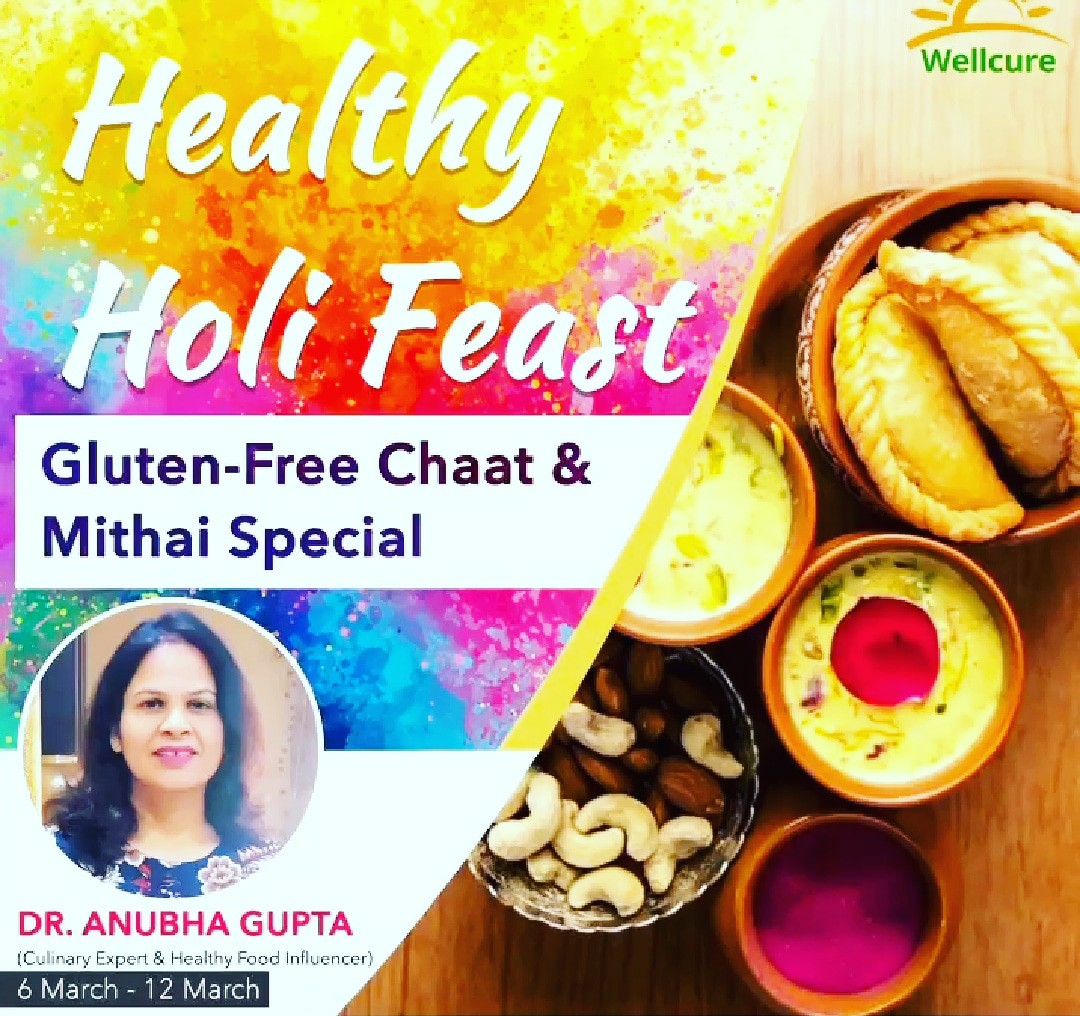 A two-day workshop/program conducted on the theme “Healthy Holi Feast” with Wellcure.The workshop was especially designed for people who were looking for Gluten Free/Plant based/Oil free/sugar free options to satiate their taste buds with famous HOLI delicacies. The kind of response that has been received from the participants in the first workshop conducted… on 6th-7th March 2021 was so endearing that the repeat workshop was conducted on 20th-21stMarch 2021.