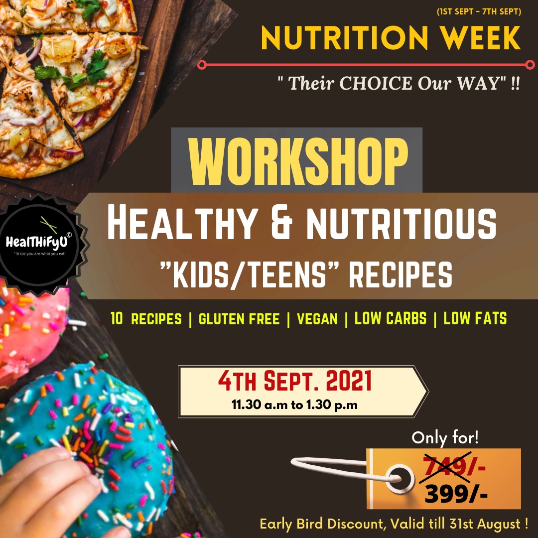 Let’s celebrate this year’s Nutrition Week (1st -7th September) by saying NO to Junk Food, to which our kids are most vulnerable. Kids are fond of all unhealthy stuff that can cause abnormal weight gain & lots of other issues such as bloating, inflammation, even PCOS & Diabetes in many. Excessive use of Refined flour, Refined Sugar & Dairy products is the main culprit.