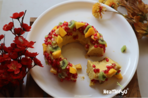 A Bundt pan generally has grooved sides, but its most defining design element is the central tube or “chimney” which leaves a cylindrical hole through the centre of the cake. This mango Bundt cake a healthy option for all as besides using whole wheat flour it has been iced using yoghurt & mango puree.